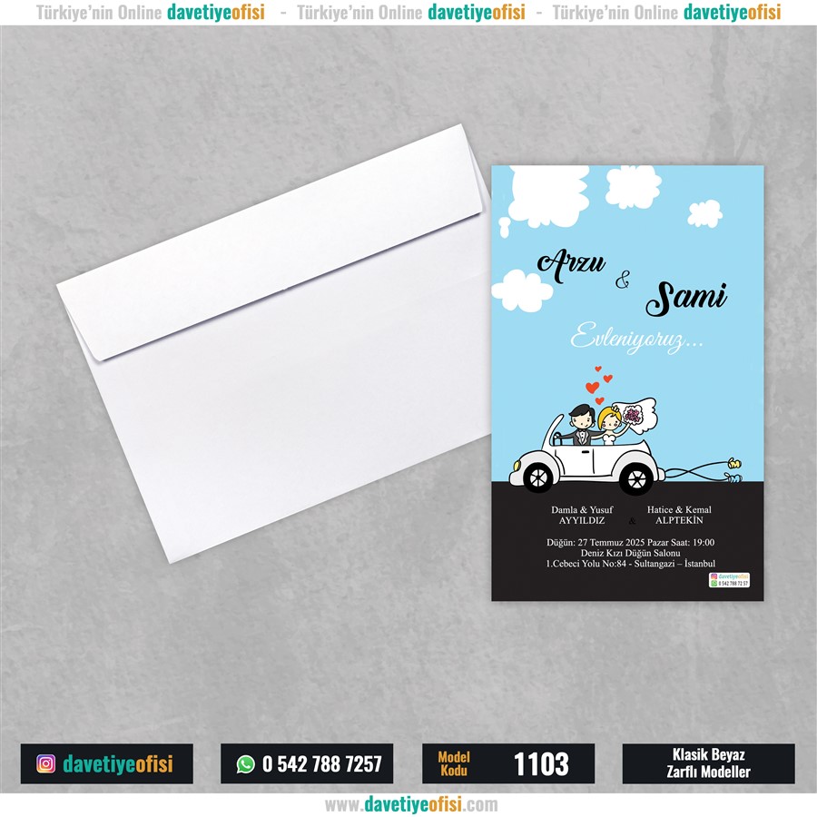 Davetiye kartlarının Zarflara yerleştirilmesi Müşteriye aittir.
