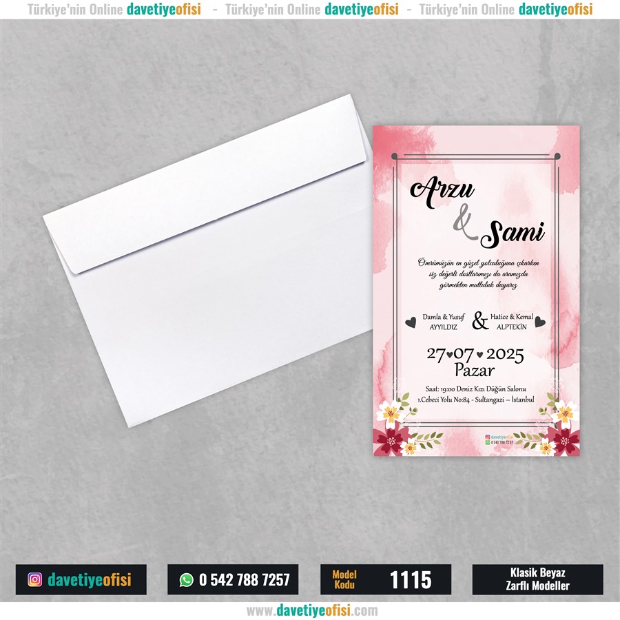 Davetiye kartlarının Zarflara yerleştirilmesi Müşteriye aittir.