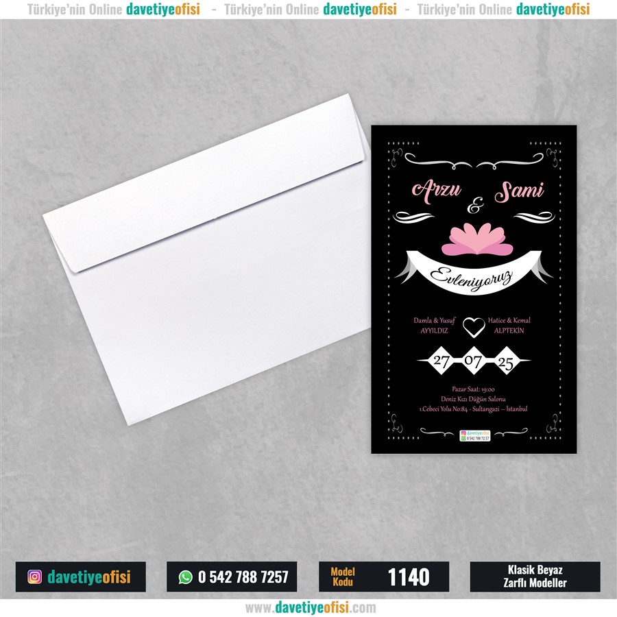 Davetiye kartlarının Zarflara yerleştirilmesi Müşteriye aittir.