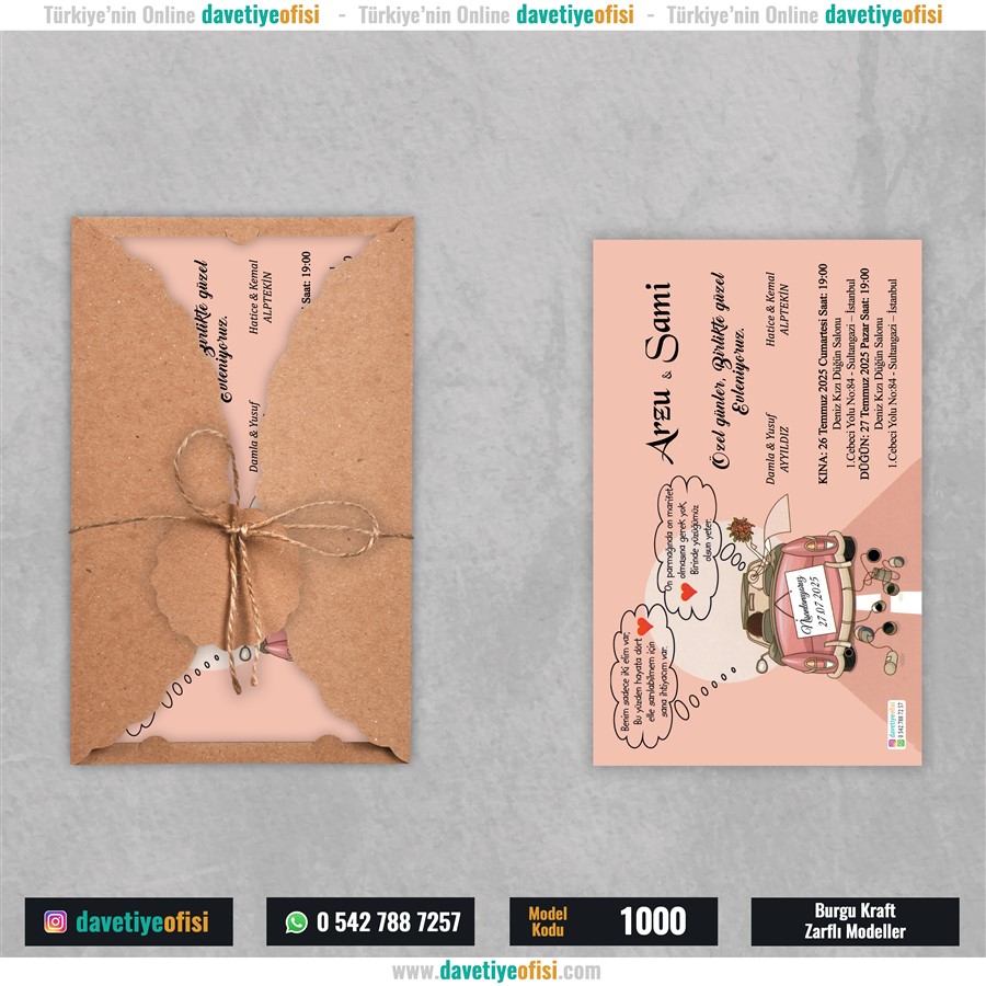Zarfların ip bağlama ve Davetiye kartlarının Zarflara yerleştirilmesi Müşteriye aittir.
