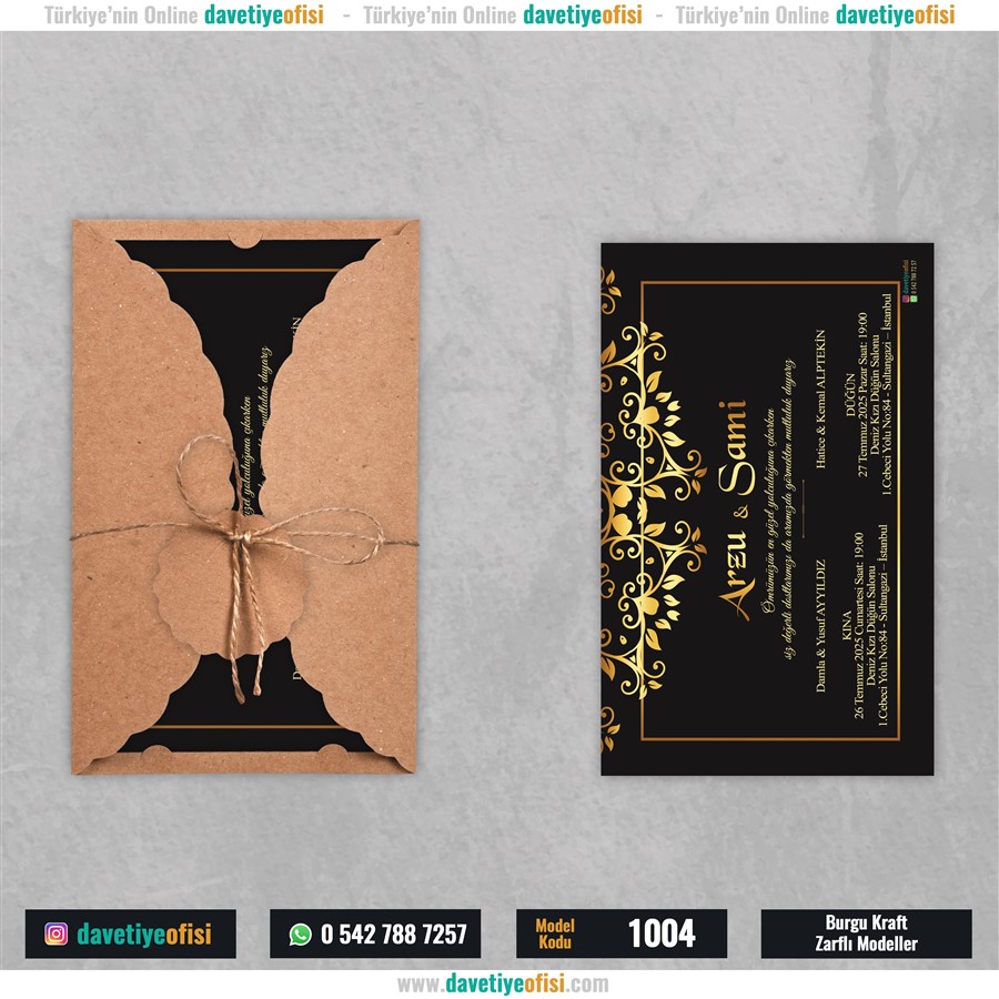 Burgu Kraft Zarflı Modeller kategorisindeki bu ürün 28 Haziran 2024 tarihinde sitemize eklenmiştir. Bugüne kadar 1.114 ziyaretçinin incelediği bu davetiye modelini beğendiyseniz hemen sipariş verebilirsiniz.