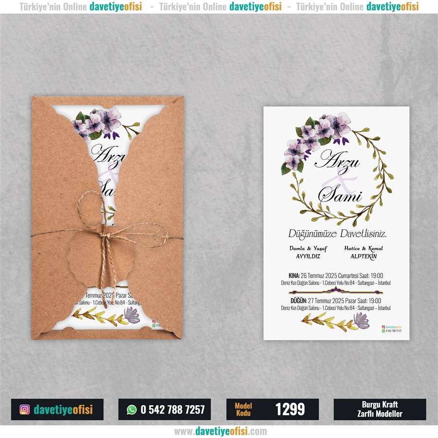 Davetiye – Zarf – Baskı – Kdv Dahildir.