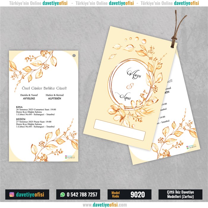 1000 Adet Çiftli-İkiz Davetiye Model-9020