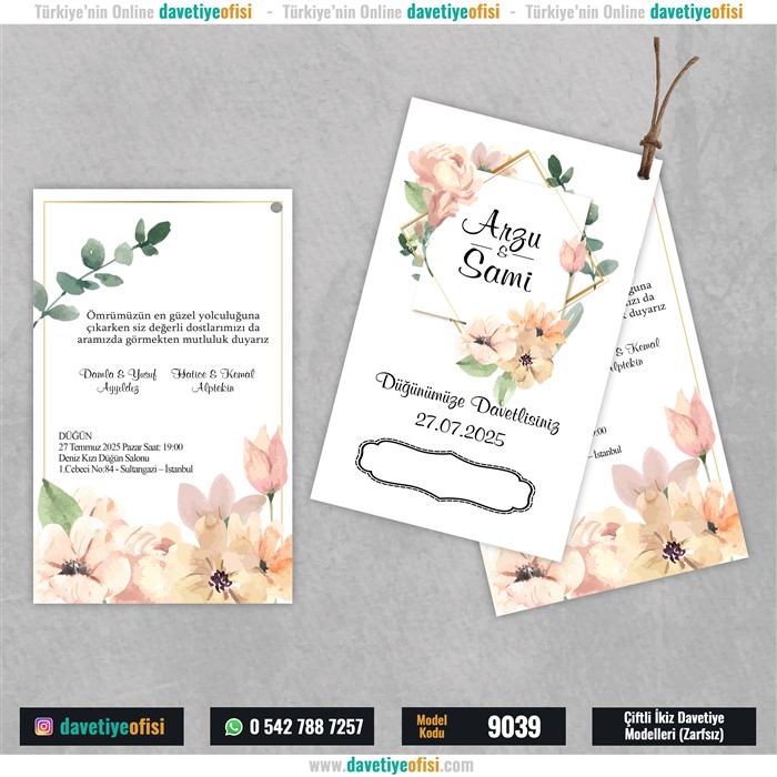 1000 Adet Çiftli-İkiz Davetiye Model-9039