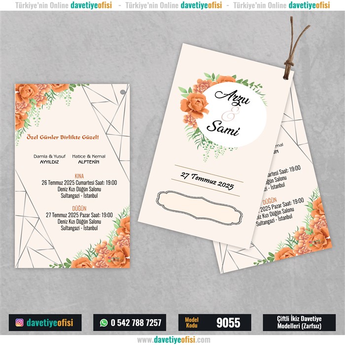 1000 Adet Çiftli-İkiz Davetiye Model-9055