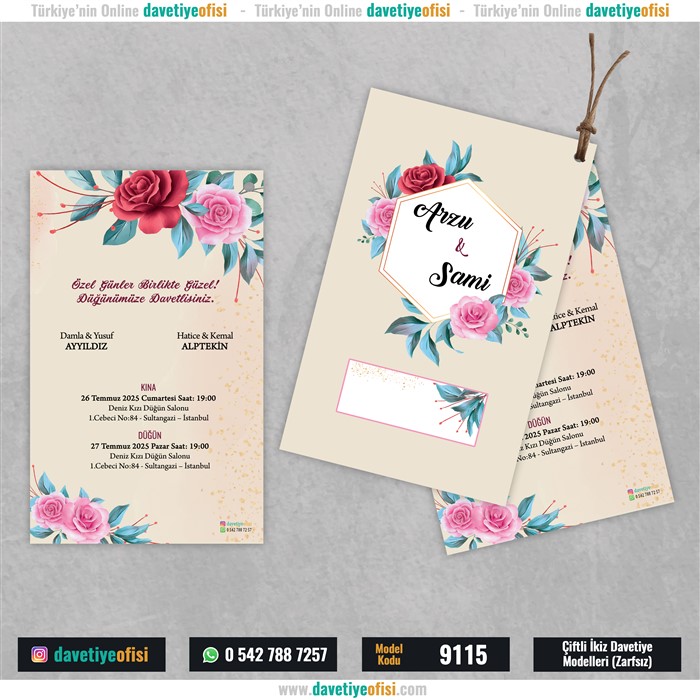 1000 Adet Çiftli-İkiz Davetiye Model-9115