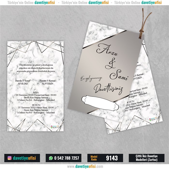 1000 Adet Çiftli-İkiz Davetiye Model-9143