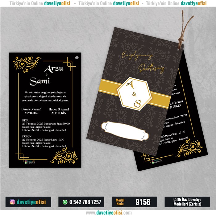 1000 Adet Çiftli-İkiz Davetiye Model-9156