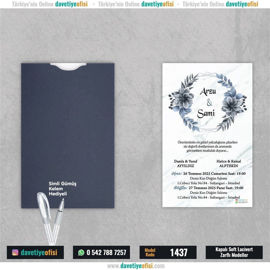 Kapalı Lacivert Zarflı Modeller kategorisindeki bu ürün 28 Haziran 2024 tarihinde sitemize eklenmiştir. Bugüne kadar 1.008 ziyaretçinin incelediği bu davetiye modelini beğendiyseniz hemen sipariş verebilirsiniz.