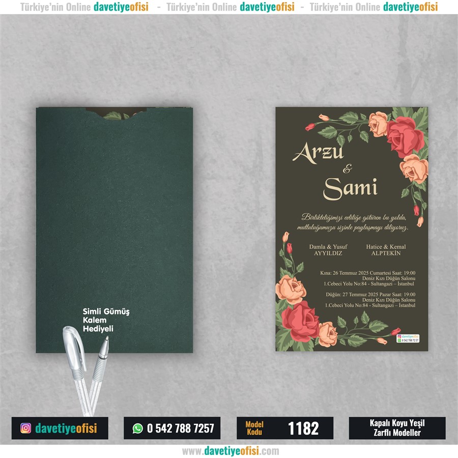 Kapalı Yeşil Zarflı Modeller kategorisindeki bu ürün 28 Haziran 2024 tarihinde sitemize eklenmiştir. Bugüne kadar 3.998 ziyaretçinin incelediği bu davetiye modelini beğendiyseniz hemen sipariş verebilirsiniz.
