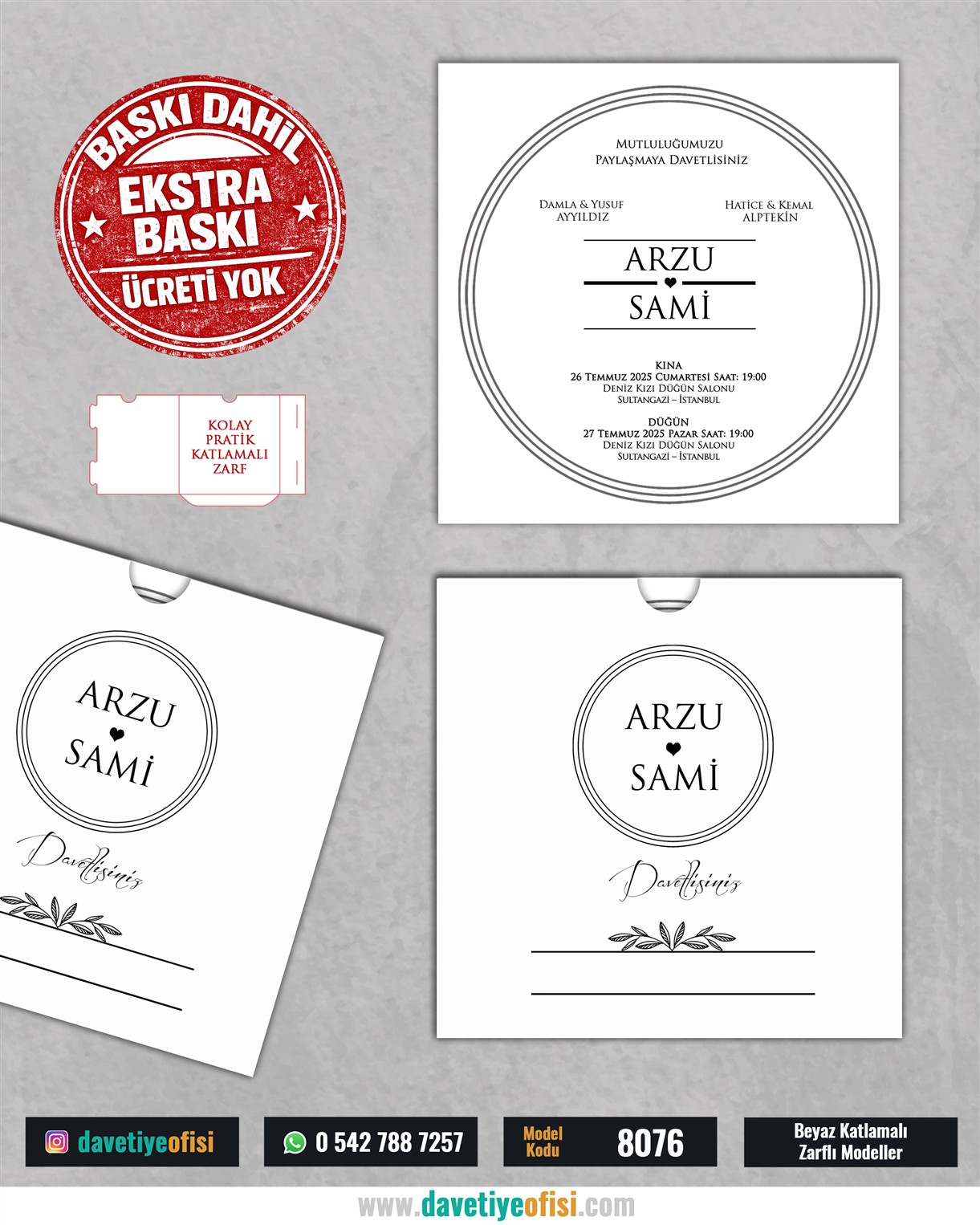 Davetiye – Zarf – Baskı – Kdv Dahildir.