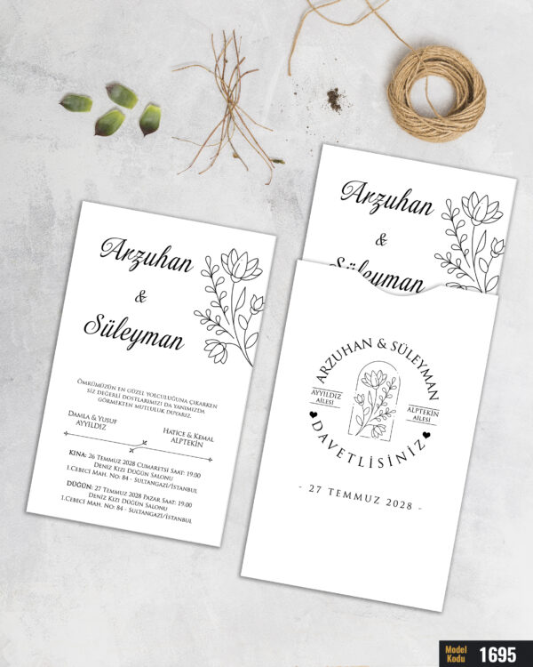 Zarfların İp Bağlama ve Davetiye kartlarının Zarflara yerleştirilmesi Müşteriye aittir.
