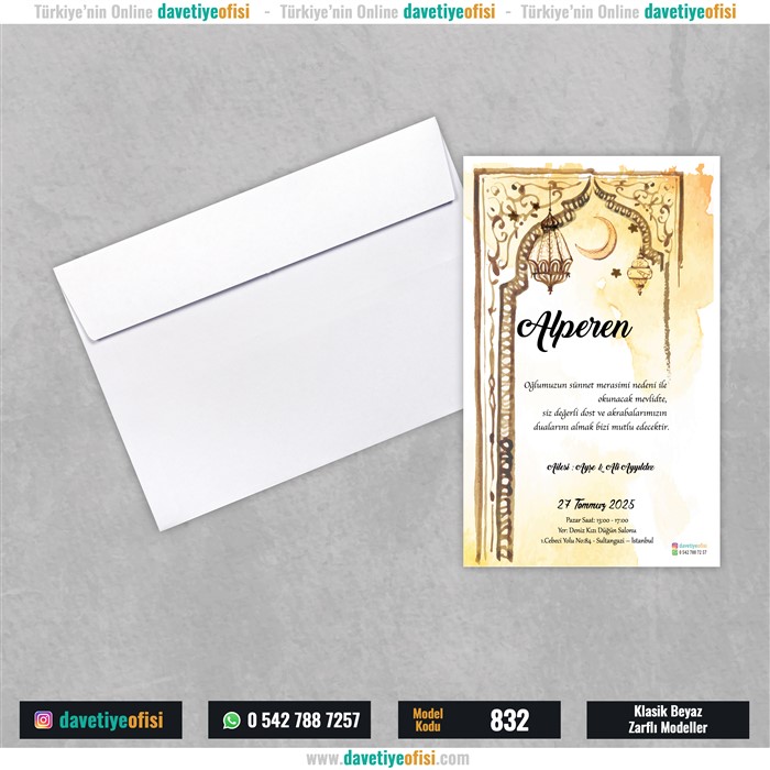 Klasik Beyaz Zarflı Sünnet Davetiyeleri kategorisindeki bu ürün 28 Haziran 2024 tarihinde sitemize eklenmiştir. Bugüne kadar 3.581 ziyaretçinin incelediği bu davetiye modelini beğendiyseniz hemen sipariş verebilirsiniz.