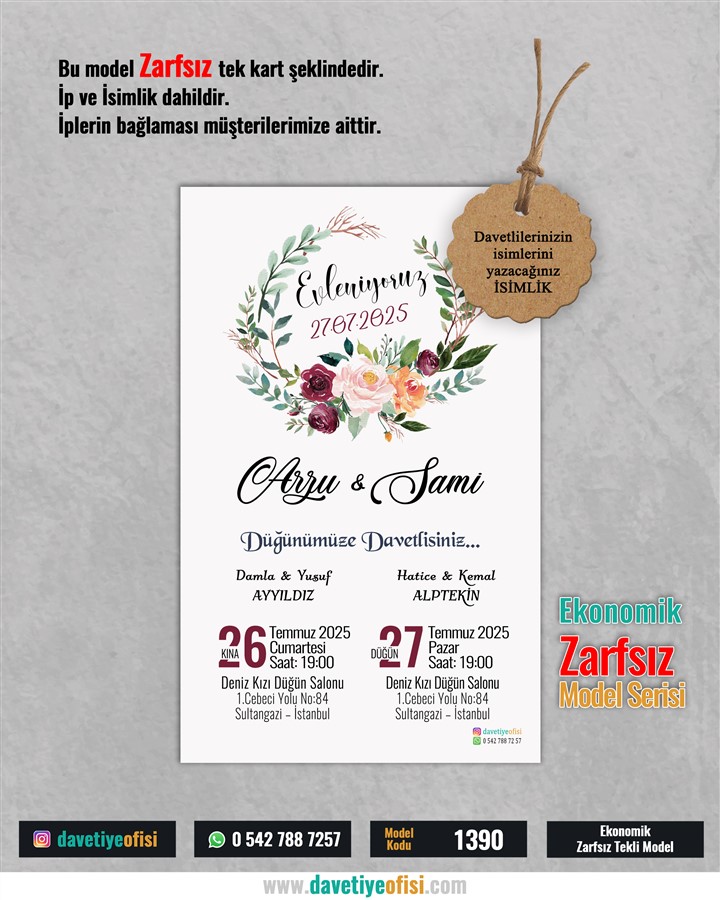 Zarfsız Ekonomik Modeller kategorisindeki bu ürün 28 Haziran 2024 tarihinde sitemize eklenmiştir. Bugüne kadar 1.421 ziyaretçinin incelediği bu davetiye modelini beğendiyseniz hemen sipariş verebilirsiniz.