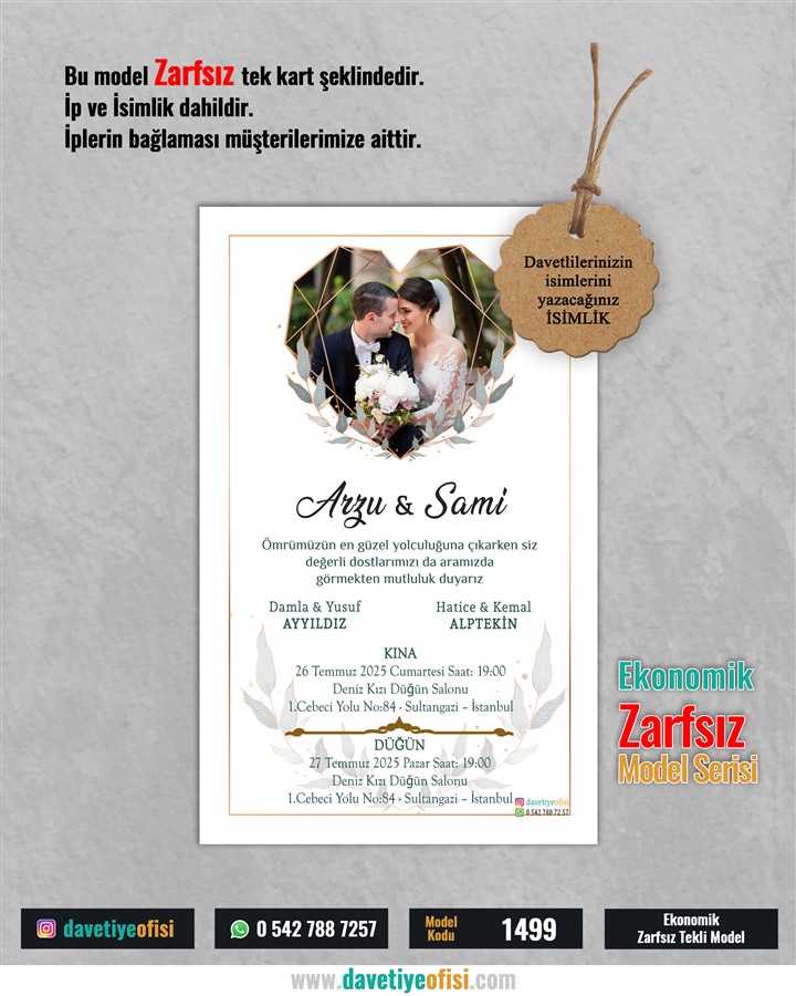 Zarfsız Ekonomik Modeller kategorisindeki bu ürün 28 Haziran 2024 tarihinde sitemize eklenmiştir. Bugüne kadar 1.924 ziyaretçinin incelediği bu davetiye modelini beğendiyseniz hemen sipariş verebilirsiniz.