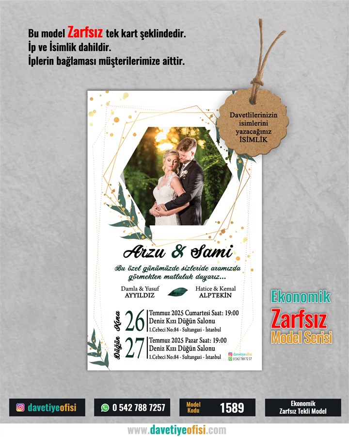 Zarfsız Ekonomik Modeller kategorisindeki bu ürün 28 Haziran 2024 tarihinde sitemize eklenmiştir. Bugüne kadar 1.990 ziyaretçinin incelediği bu davetiye modelini beğendiyseniz hemen sipariş verebilirsiniz.