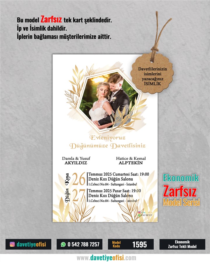 Zarfsız Ekonomik Modeller kategorisindeki bu ürün 28 Haziran 2024 tarihinde sitemize eklenmiştir. Bugüne kadar 1.016 ziyaretçinin incelediği bu davetiye modelini beğendiyseniz hemen sipariş verebilirsiniz.
