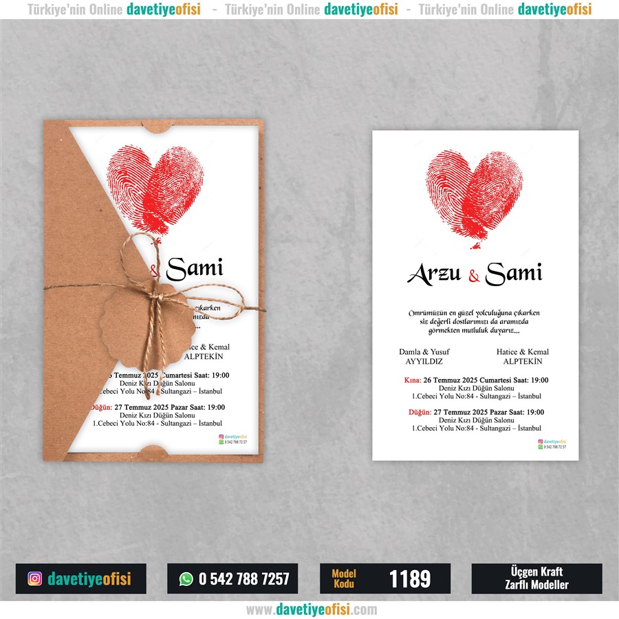 Zarfların ip bağlama ve Davetiye kartlarının Zarflara yerleştirilmesi Müşteriye aittir.